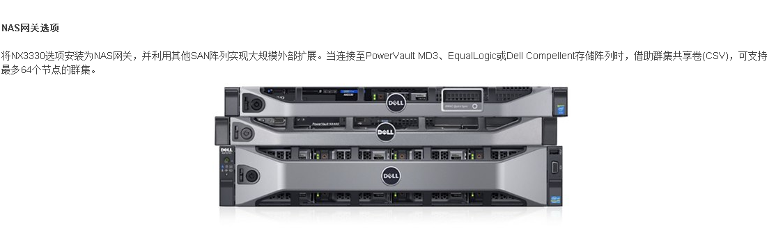 通過網(wǎng)關(guān)連接到PowerVault MD3、EqualLogic或Compellent |